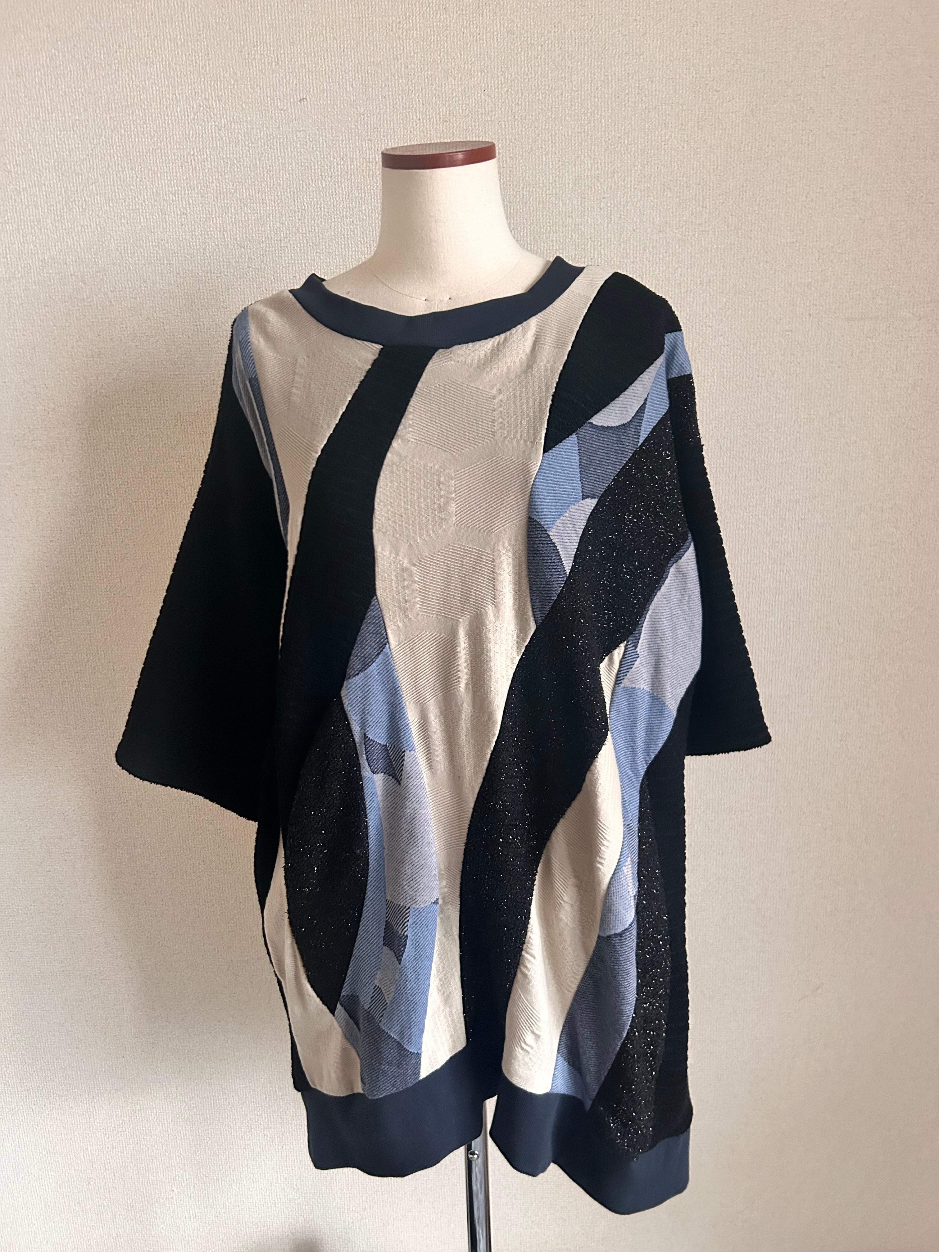 ランダムに線を配置し、ランダムに生地を切り出して縫製しているため最後までどんな姿かわからずに完成を迎えます。