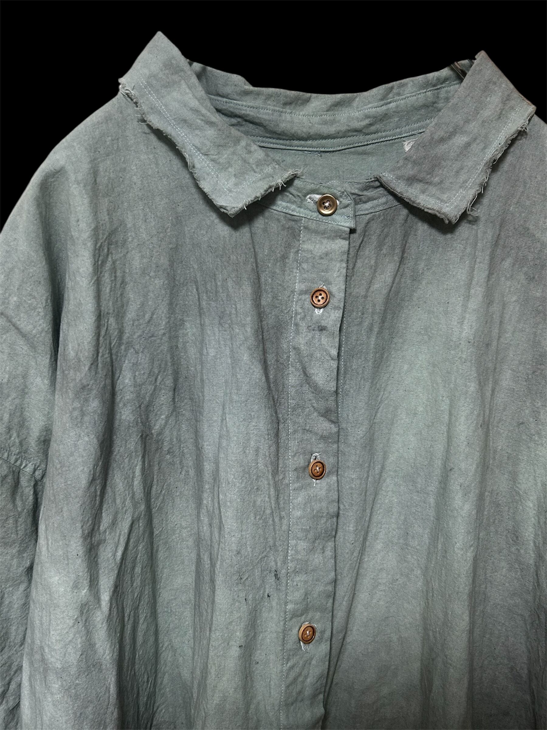 男女ともにきていただける丈、身幅に設定し、襟、カフスはHaku定番のカットオフ仕様になっています。