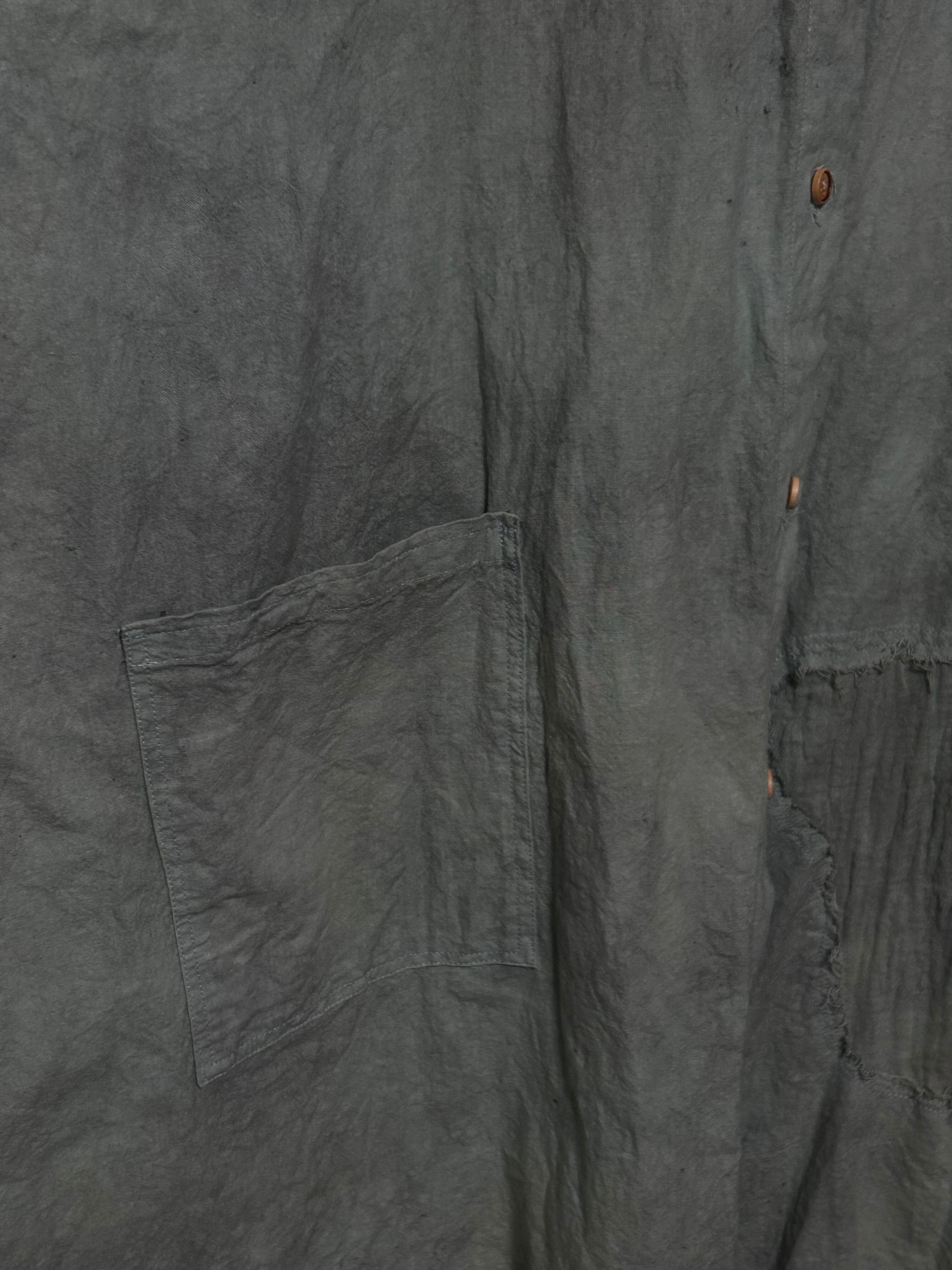 生成りを土台にエメラルドグリーンの染めを施し、パールグレーを手擦り、ムラ染めを2回ほど行い、独特な表情となりました