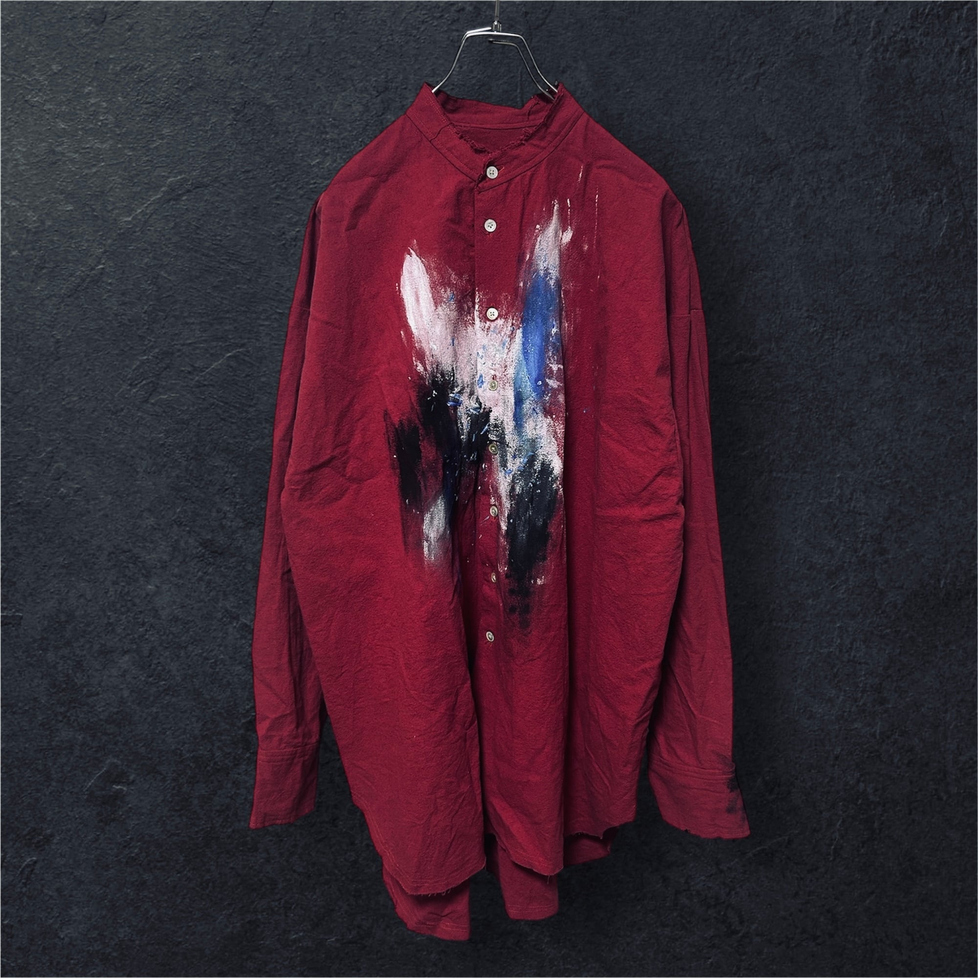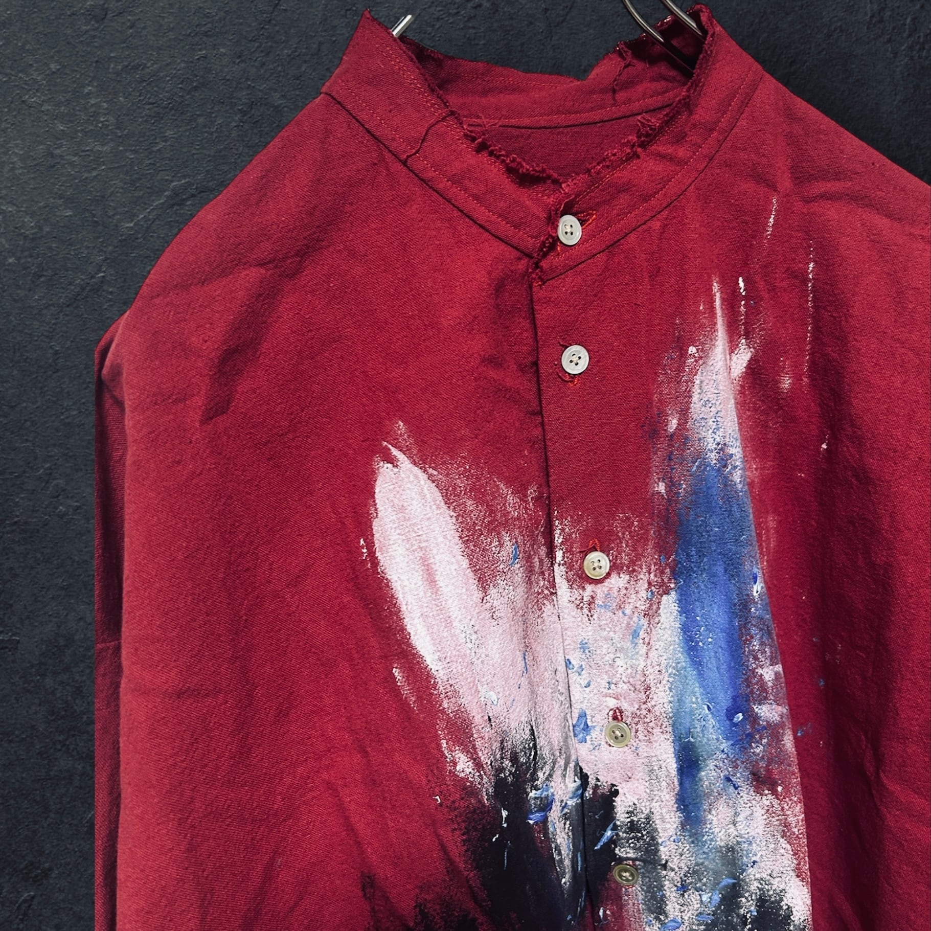 赤をベースに、胸元、背中にハンドペイントを施した1着。