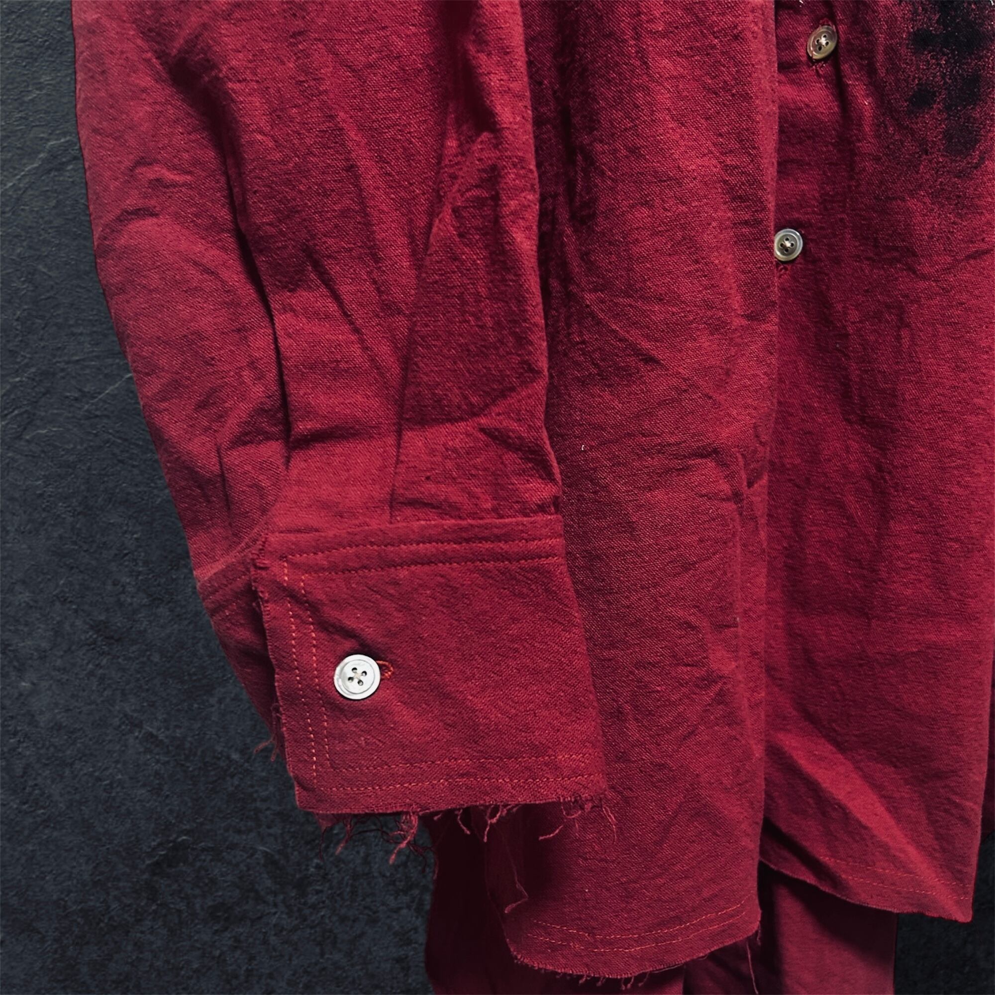 裾、襟はカットオフ加工のため、程よくアクセントが効いています。
